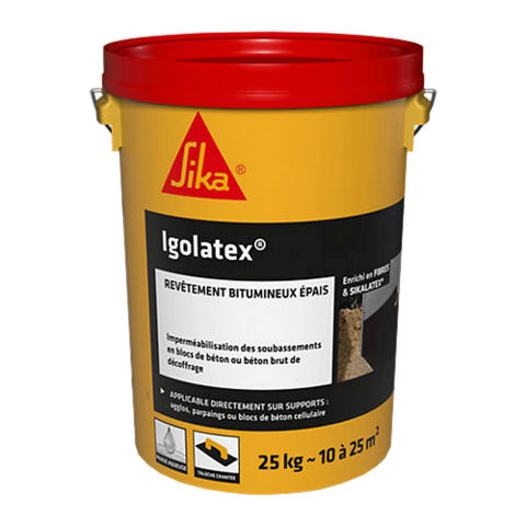 Sika® Igolatex® is een zwarte, gestabiliseerde bitumenemulsie, waaraan Sikalatex® en organische vezels toegevoegd zijn.